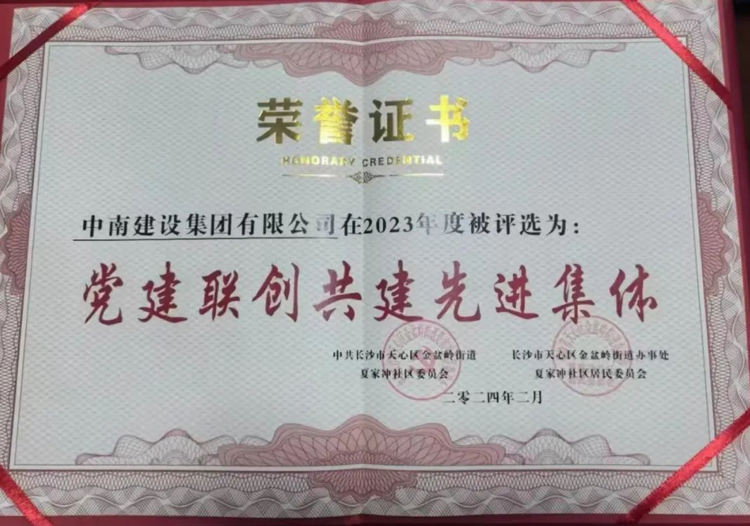 2月5日,天心区金盆岭街道夏家冲社区2023年度党建联创共建活动评选结果揭晓,中南建设集团有限公司荣获“党建联创共建先进集体”,公司副总经理许可荣获“社区建设先进个人”。该荣誉是公司积极推行“企业+社区”党建联创共建共享的成果体现,也是对双方互动合作成效的高度认可和充分肯定。