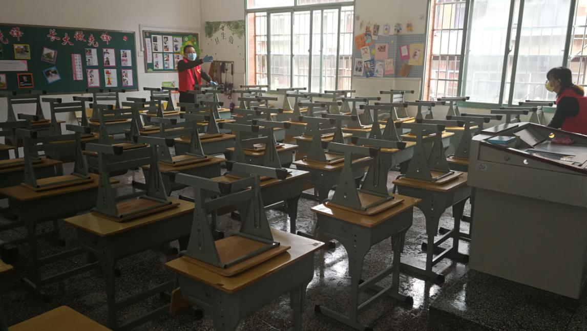 本次活动,我队30多名志愿者积极主动参与,分组对仰天湖小学校园内的11间教室、楼道、走廊等公共区域进行了全方位、无死角的清理打扫和消毒防控。活动中,志愿者们纷纷卷起袖子、拿起拖把和毛巾冲到最脏最乱的角落开展卫生整治,充分展现了地质青年“不怕脏、不怕累”的精神面貌。在大家的共同努力下,校园卫生清洁彻底、教室桌椅摆放整齐,整个校园焕然一新,得到了校方人员的高度好评。活动结束后,志愿者们脸上露出了开心的笑容,纷纷表示将继续为打赢疫情防控的人民战、总体战、阻击战凝聚精神力量,以新时代新风尚引领我队精神文明建设向更高层次迈进。