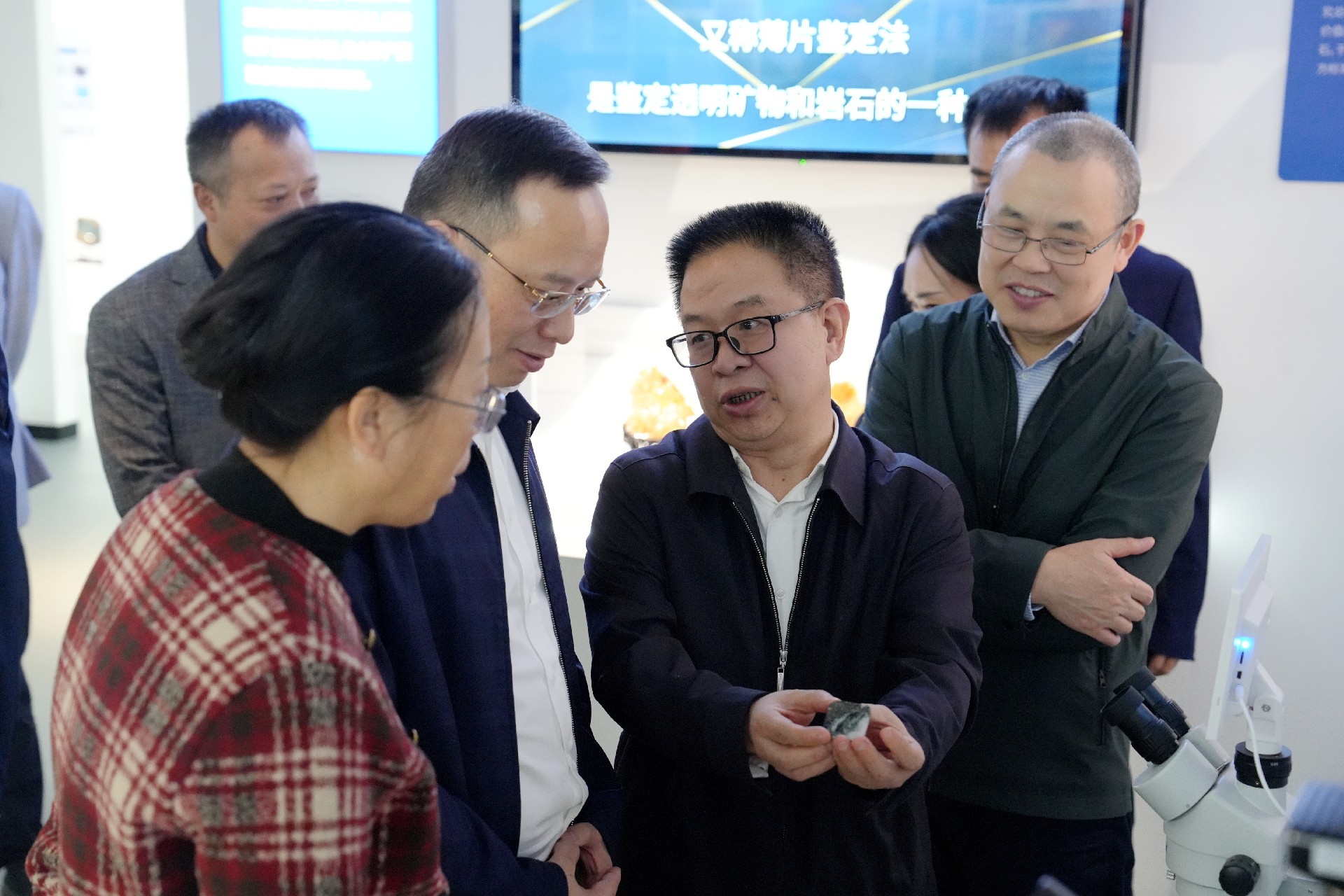 开馆仪式后,大家一同参观科普馆,在岁月流转、光影交错中,寻根溯源,感悟地质初心;用高端的仪器、有趣的实验,零距离触摸地质科技的力量;于动静结合、虚实呼应中,沉浸式体验地质测试新技术新方法新成果,感受矿物宝玉石之美、感悟地质文化之魂。