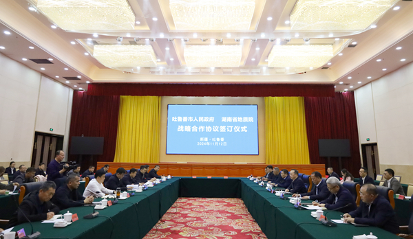 深化合作,共筑未来。11月12日,湖南省地质院与吐鲁番市人民政府举行战略协议签订仪式,共绘地质合作新蓝图。湖南省地质院党委书记谈文胜,吐鲁番市委副书记、市长克衣色尔·克尤木出席签约仪式并讲话。省地质院党委委员、副院长刘拥军和吐鲁番市副市长陈岩岭代表双方签署战略合作框架协议。